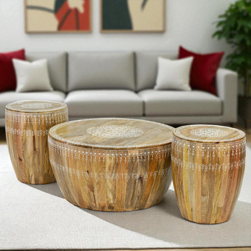 عيش الفخامة الطبيعية مع هذا الطقم المميز من الطاولات المصنوعة من خشب هندي طبيعي 100% بجودة عالية وتصميم أنيق يضيف لمسة دفء وأناقة لأي زاوية في منزلك!