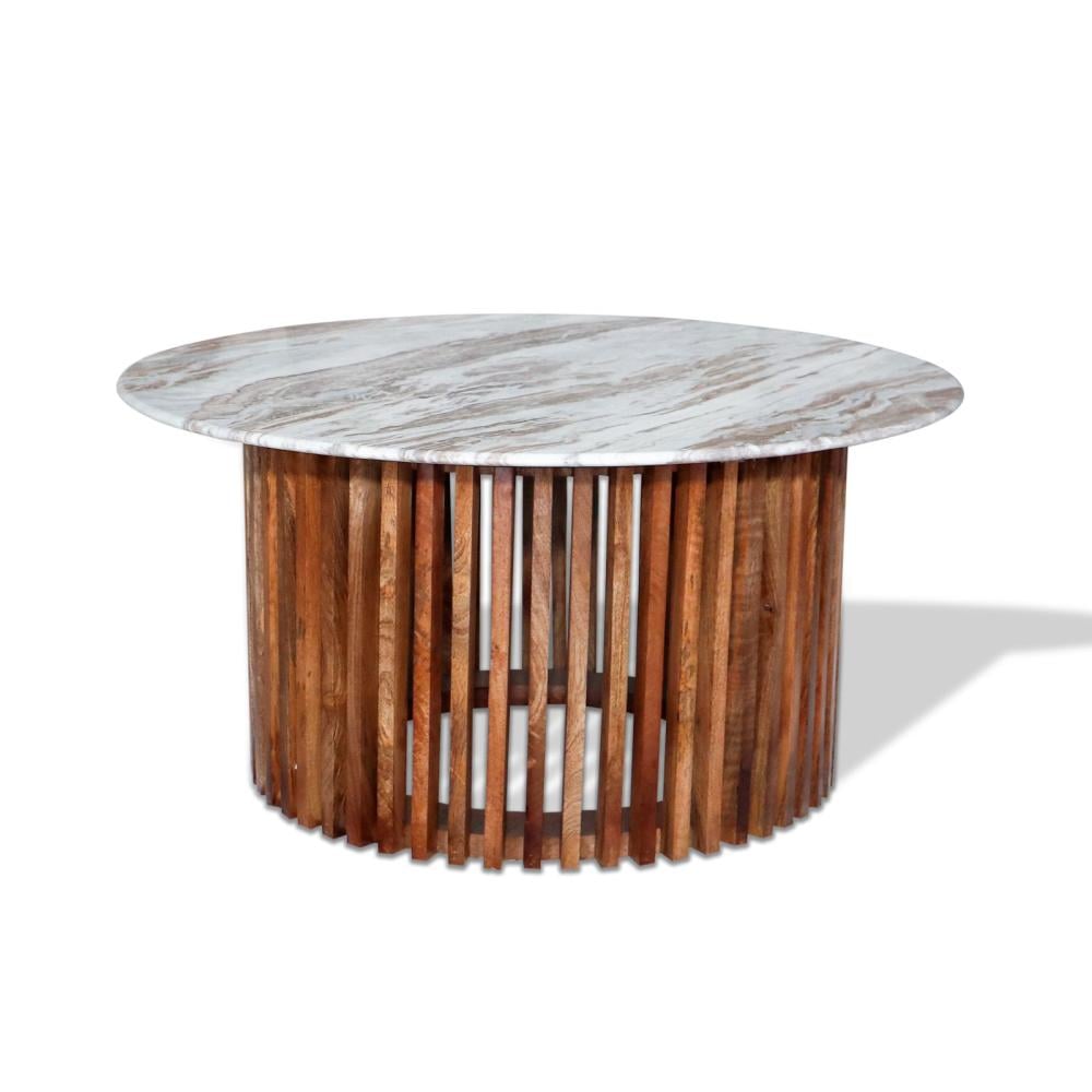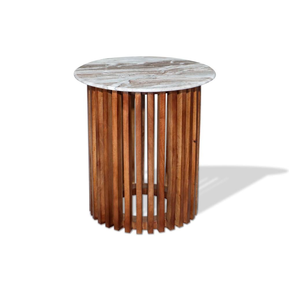 طقم طاولات 1+2 هندي رخام طبيعي وخشب طبيعي