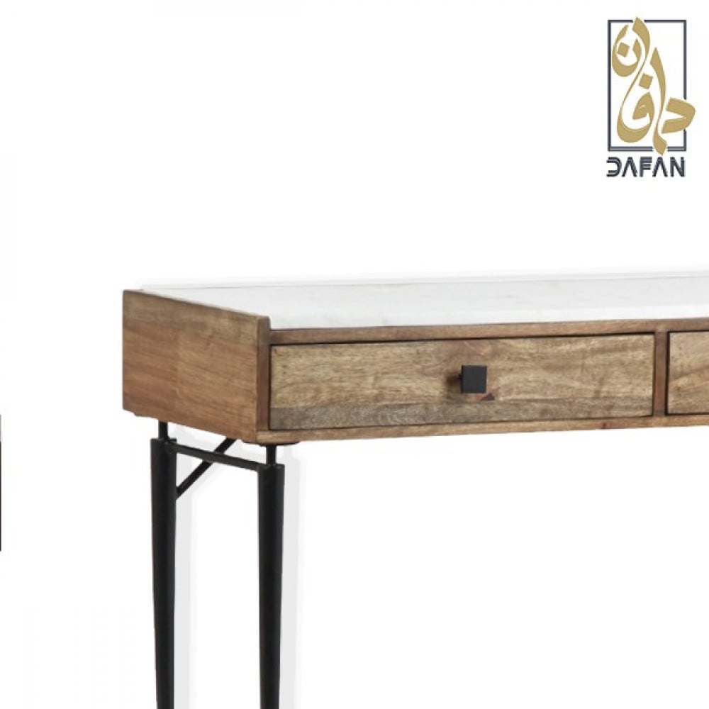 مدخل رائع مصمم من الخشب الهندي بلون بني دافئ وجميل. يمتاز هذا المدخل بأنه يوفر لمسة أنيقة ودافئة لأي منزل. تأتي قاعدة المدخل وأرجله مصنوعة من الحديد، مما يعزز من القوة والاستقرار ويضفي لمسة من التباين الجميل بين الخشب والحديد.